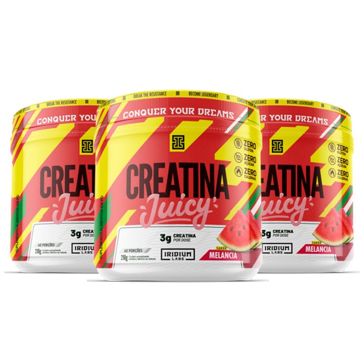 A Creatina Juicy é a creatina monohidrata da Iridium Labs. A creatina monoidratada é a que tem maior número de evidências tanto para a segurança quanto para a eficácia, além de ser a melhor forma que eleva as concentrações musculares de creatina, inclusive é a versão mais pura e mais barata no mercado.