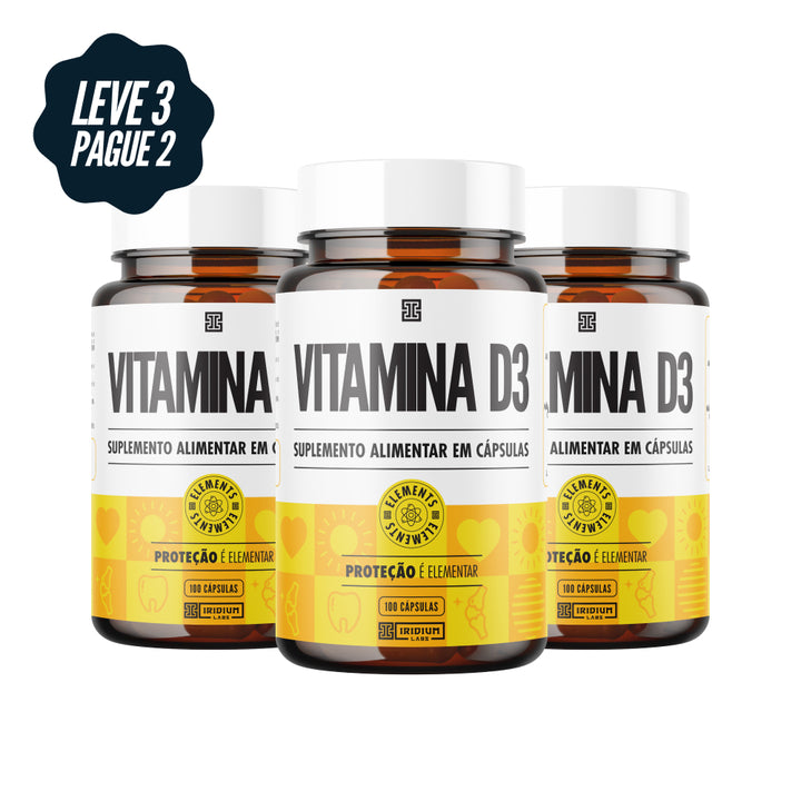 Um sol em cápsulas. A Vitamina D3 Elements é um dos nutrientes essenciais para o nosso corpo e exerce inúmeras funções. A Vitamina D3 é na verdade um pró-hormônio com funções em mais de 2.000 genes. A suplementação de Vitamina D3, sua forma ativa, é necessária para garantir níveis ideais e manter o bom funcionamento do organismo. A Sociedade Americana de Endocrinologia recomenda a ingestão de 600 a 2000 UI por dia de Vitamina D, dependendo da quantidade de sol a que o indivíduo está exposto. Doses acima de 4000 UI parecem não trazer benefícios adicionais.